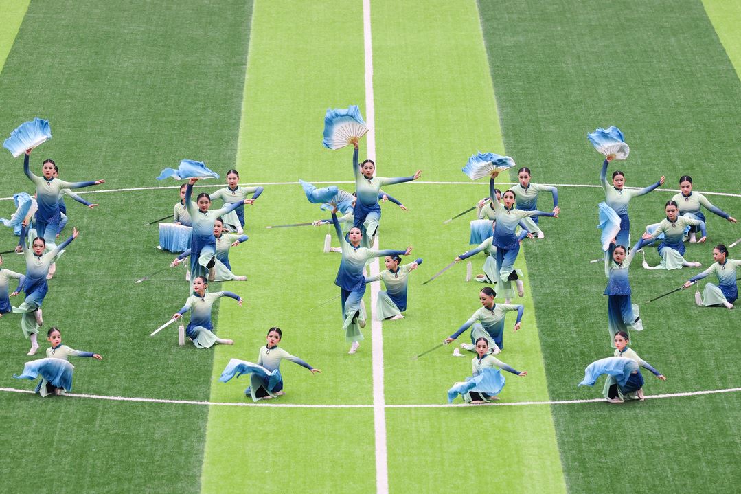 29691 次浏览 12-1512 月14日,北碚缙云鼎久队主场迎战两江信也科技队。中场休息时,北碚区青少年活动中心创排的意境舞蹈《少年江河志》精彩上演,为观众带来了耳目一新的视觉体验。记者在现场看到,在球场中央,51 名身着飘逸