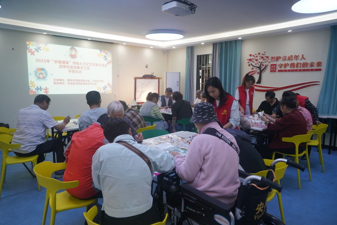 13141 次浏览 10-2010月16日,2025年“梦想课堂”残疾人文化艺术普及培训龙凤社区创意手工班秋季班开课,首期课程吸引20余名残疾人学员及家属参与。社区志愿者通过非遗手工,带领大家感受中华传统文化魅力,营造了互助友爱的