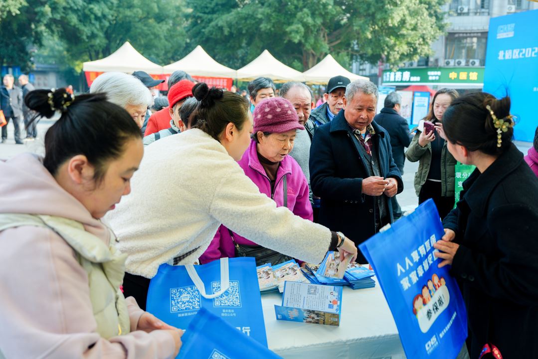 33856 次浏览 11-2611月21日,北碚区医疗保障局联合区税务局,在嘉陵风情步行街广场正式启动以“中国医保、一生守护”为主题的2025年全民参保集中宣传月活动,通过面对面政策解读,为市民提供精准参保缴费指导。活动现场,来自