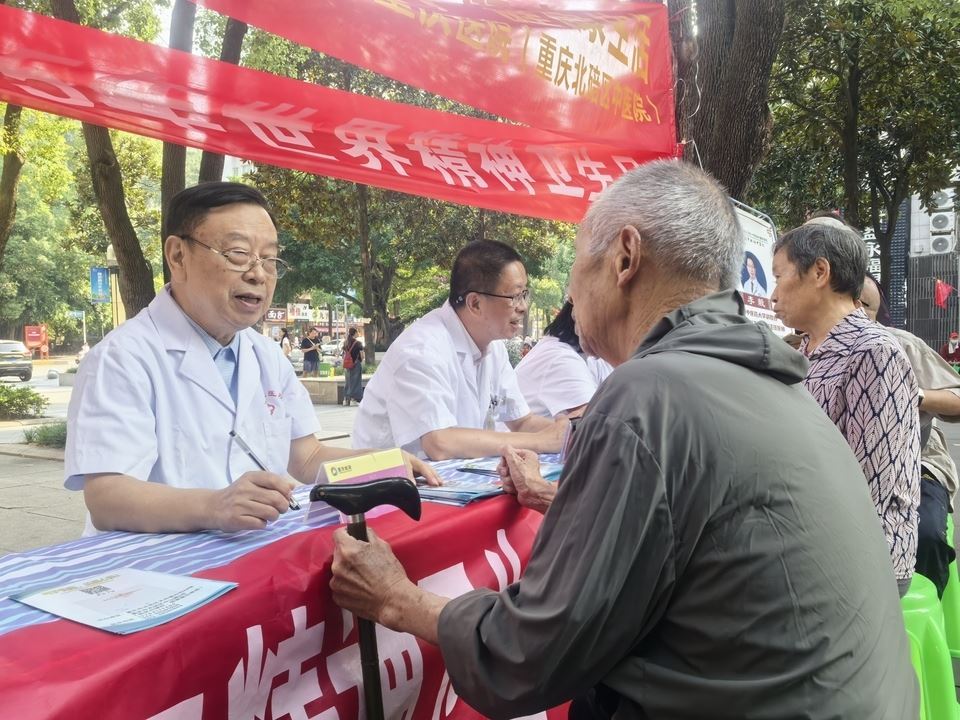 10月12日,区第二精神卫生中心联合广州中医药大学第一附属医院重庆医院(重庆市北碚中医院)(以下简称“区中医院”)在北碚嘉陵风情步行街开展“世界精神卫生日”公益义诊活动。