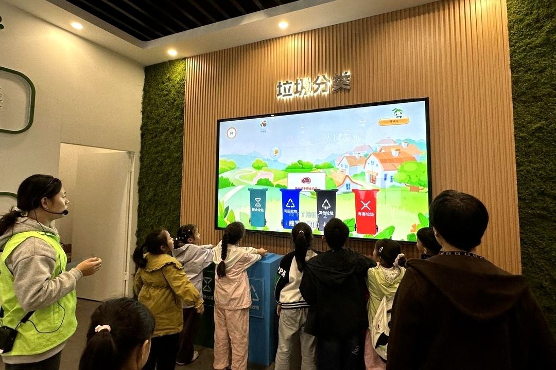 活动当天,师生们一进入展厅,就被现代化的生态沙盘、内容丰富的图文展板以及各类互动设施所吸引。在“无废乡村”展区,讲解员为大家介绍了“无废乡村”理念,并展示农业废弃物资源化利用的奇妙过程。在天空农场区,师生们通过触控平台,体验了生态种植方式与栽培流程;在面源防治区,师生们骑上自行车,身临其境地感受现代科技在农业面源污染治理中的应用;在垃圾分类区,“垃圾分类大作战”互动游戏点燃了师生们的参与热情,在玩乐中轻松掌握分类知识。